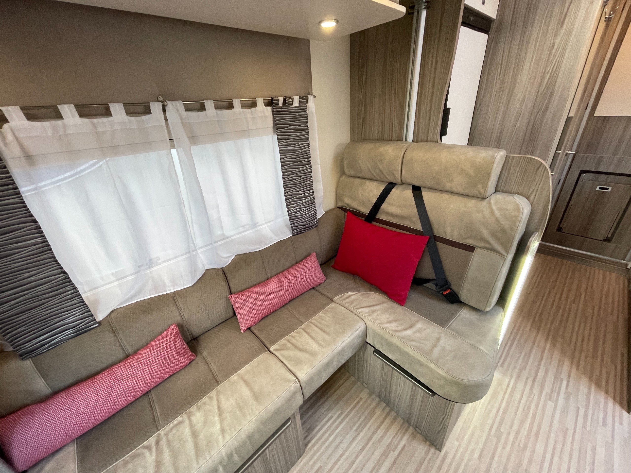 - Front dinette with travelling seat belts
