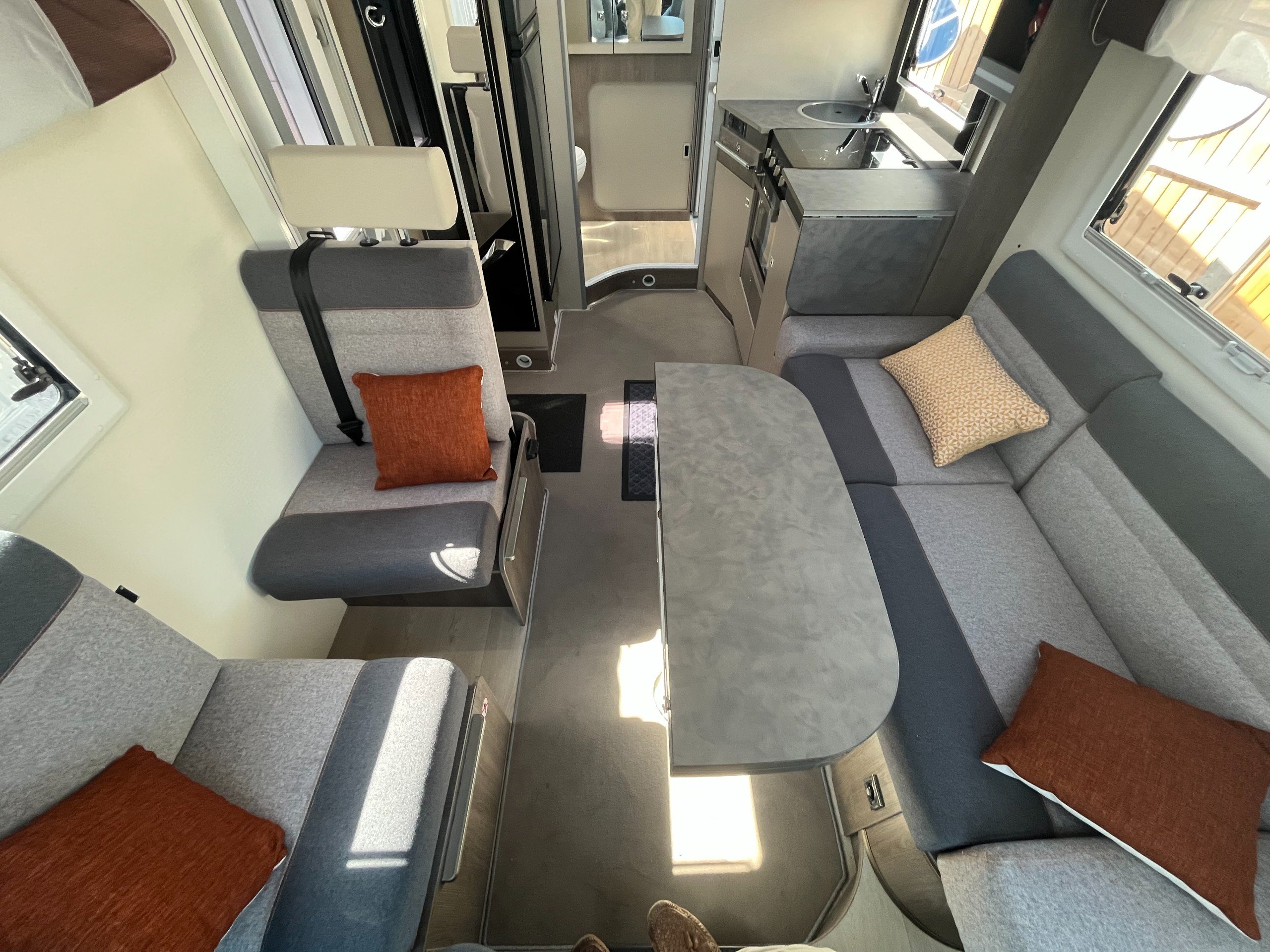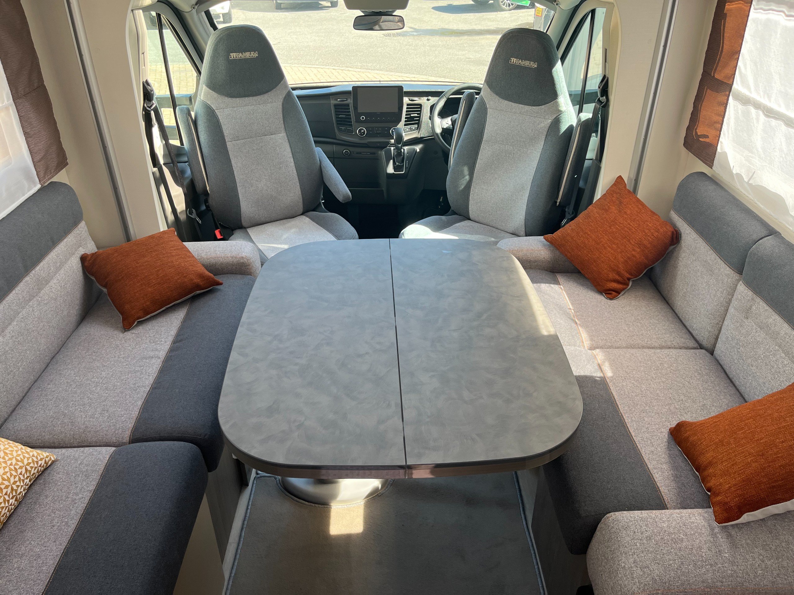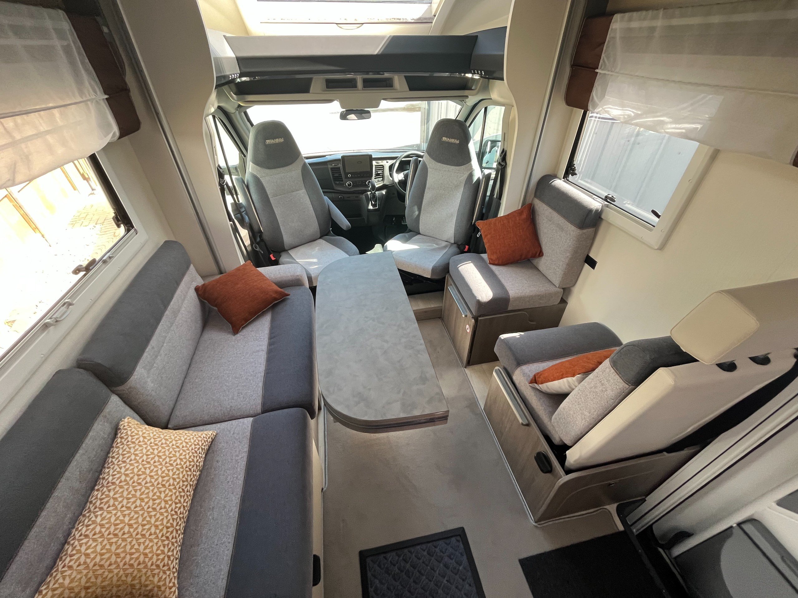 - Front dinette with travelling seat belts